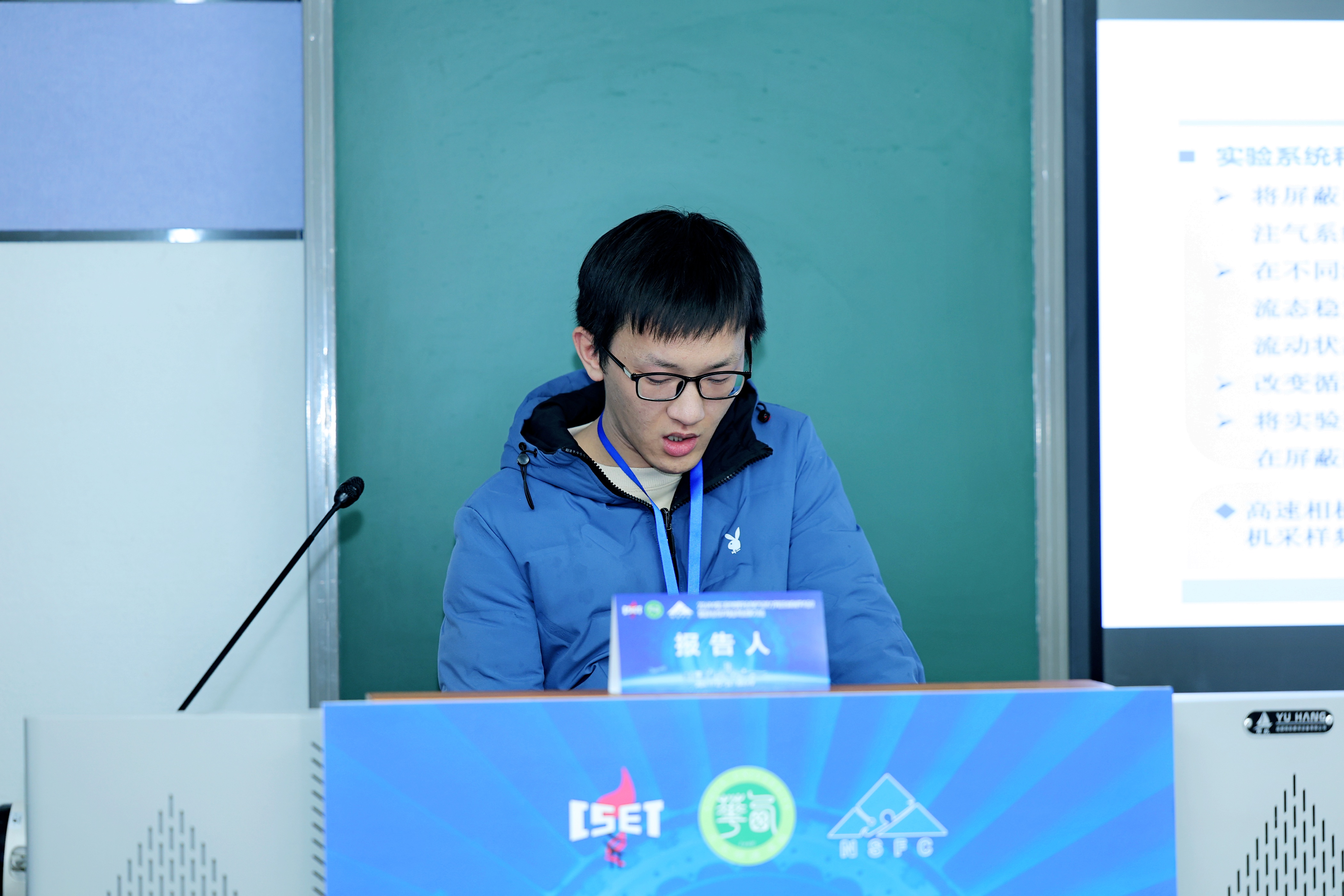 研究生夏洪在主题为其他交叉领域的学术论文交流会上作关于“屏蔽间隙内含气冷却水的流动特性”的报告。