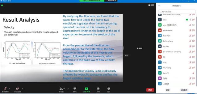 能动学院/实验室老师及硕士研究生王冬、徐洋、邵爽受邀参加了本次大会,并分别作了题为“Pressure pulsation analysis of runner and draft tube of pump turbine under different working conditions”、“Analysis and research on sluice gate flow of a hydropower station under different working conditions”、“Analysis of deformation characteristics of flood gates of runoff hydropower stations under different operating conditions in case of frequent floods”的主题报告,报告受到了国内外同行的关注。